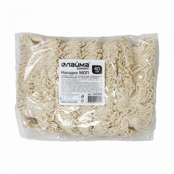 Насадка МОП плоская для швабры/держателя 40 см, уши/карманы (ТИП У/К), нашивной хлопок, LAIMA EXPERT, 605303