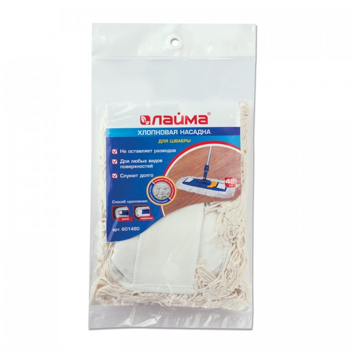 Насадка МОП плоская для швабры/держателя 42 см, уши/карманы (ТИП У/К), хлопок 4,5 см, упаковка, LAIMA, 601480