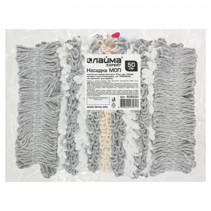 Насадка МОП из хлопка с добавлением микрофибры LAIMA EXPERT предназначена для проведения сухой и влажной уборки помещения. МОПы имеют стики 4-цветовой кодировки по HACCP для исключения перекрестного загрязнения помещений.