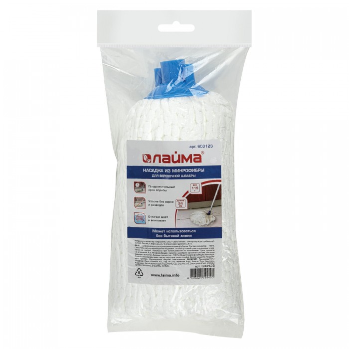 Насадка веревочная из микрофибры ЛАЙМА предназначена для проведения влажной и сухой уборки помещения.