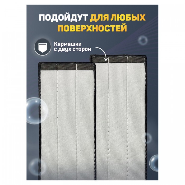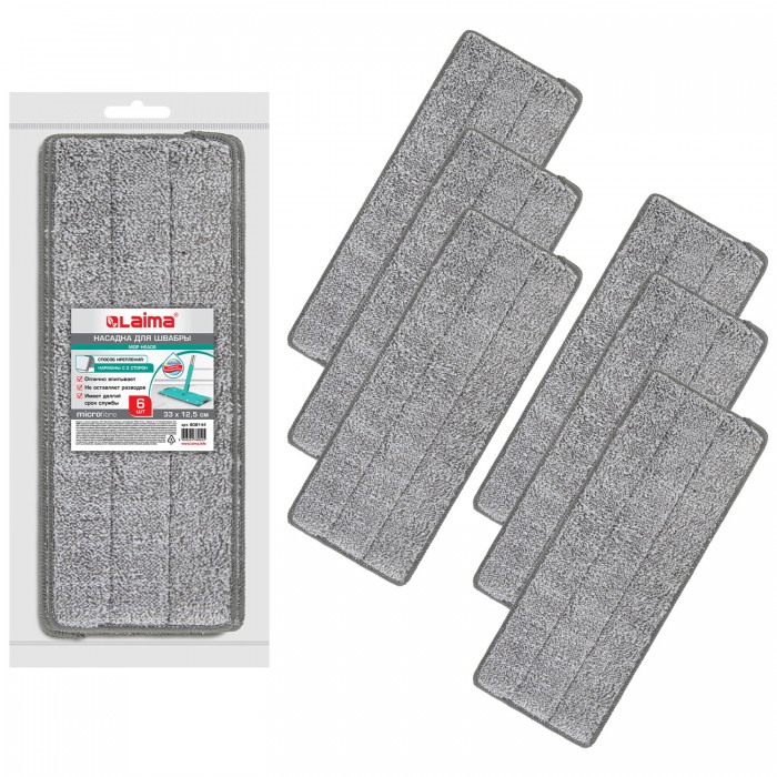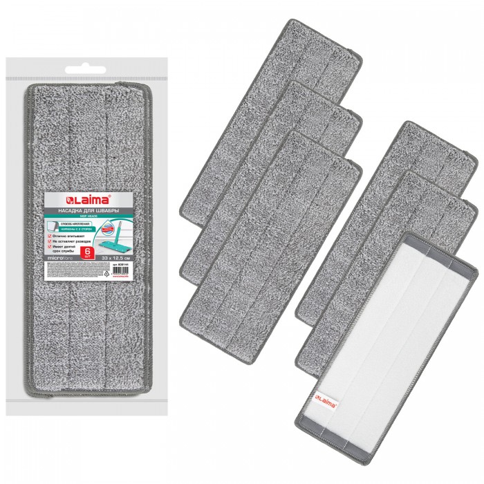 Насадки МОП для швабры (кармашки c 2-х сторон) КОМПЛЕКТ 6 шт., микрофибра, 33х12,5см, LAIMA, 608144