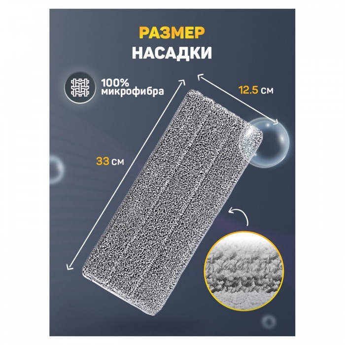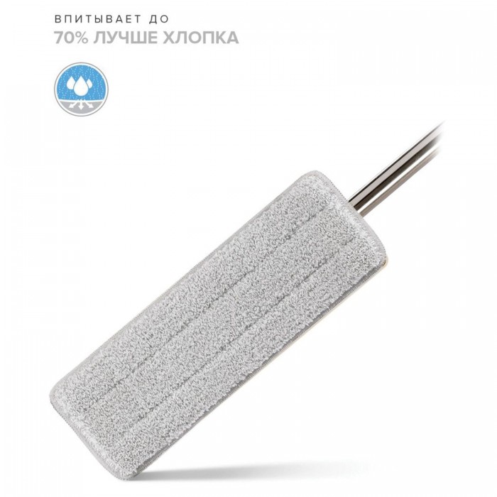 Плоская насадка МОП для швабры хорошо впитывает воду и не оставляет разводов при мытье полов и других покрытий. С такой насадкой уборка будет быстрой и комфортной. Насадка подходит для типовых швабр (карманы с одной стороны).