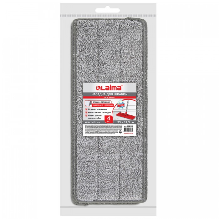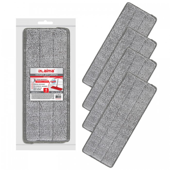 Насадки МОП для швабры (кармашки с 1-й стороны) КОМПЛЕКТ 4 шт., микрофибра, 33х12,5 см, LAIMA, 608145