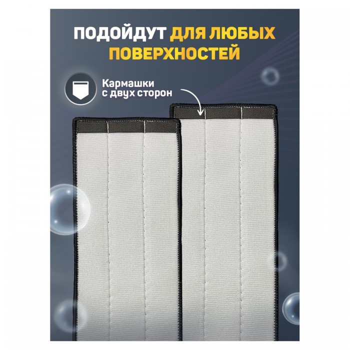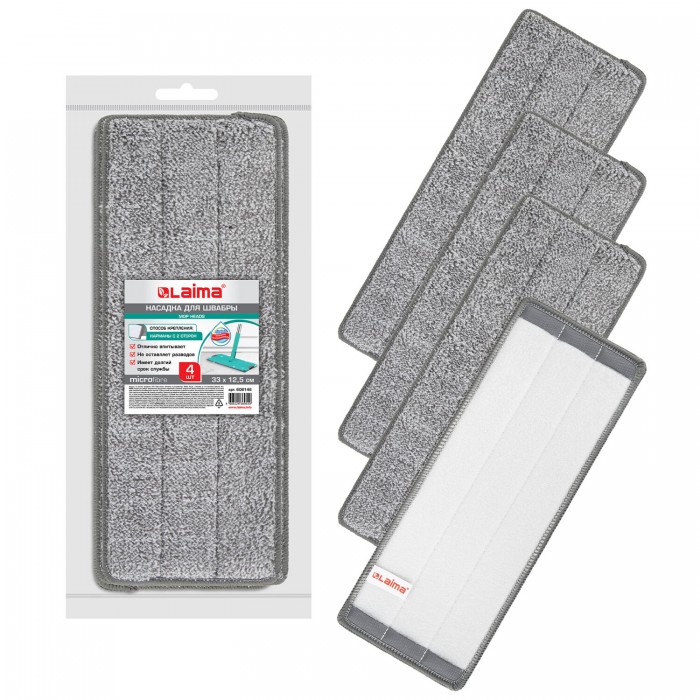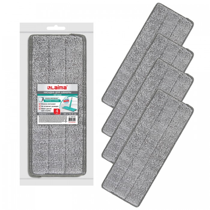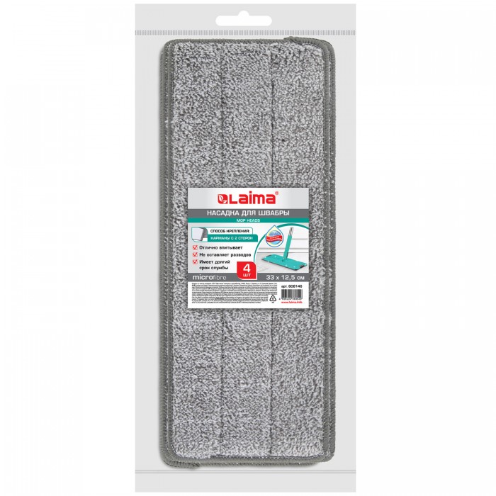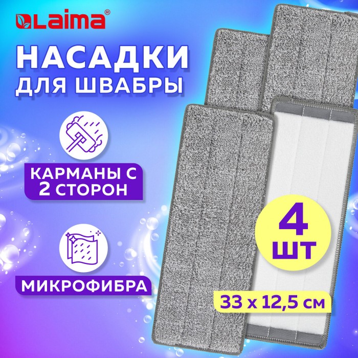 Насадки МОП для швабры (кармашки с 2-х сторон) КОМПЛЕКТ 4 шт., микрофибра, 33х12,5 см, LAIMA, 608146