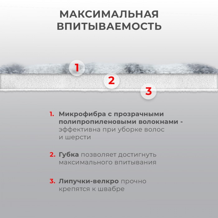 Плотные насадки для швабры LAIMA хорошо впитывают воду и не оставляют разводов при мытье полов и других поверхностей. Подходят как для сухой так и для влажной уборки помещения. С такими насадками уборка станет максимально эффективной.