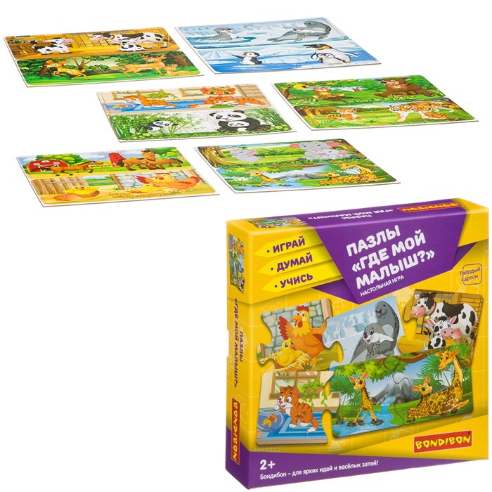 Комплектация: 24 двусторонние карточки - пазлы Материал: картон Упаковка: картонная коробка Размер упаковки: 19*19*4 см Возраст: 2+ Количество игроков: от 2 Страна обладатель бренда: Россия Красочная и яркая настольная игра - прекрасный способ весело и с пользой провести время с друзьями и в кругу семьи. На обороте каждого пазла прописана история, которая произошла с каждым из персонажей на картинке. Цель игры - найти парные картинки и правильно соединить их: каждый малыш должен найти свою маму. Красивые иллюстрации привлекут внимание ребенка. Оригинальная настольная игра поможет весело и интересно провести время. Настольная игра направлена на развитие логического и стратегического мышления, коммуникативных навыков, умения принимать совместные решения. Все элементы игры выполнены из качественных и прочных материалов, окрашены безопасными нетоксичными красками, устойчивыми к износу и выгоранию.