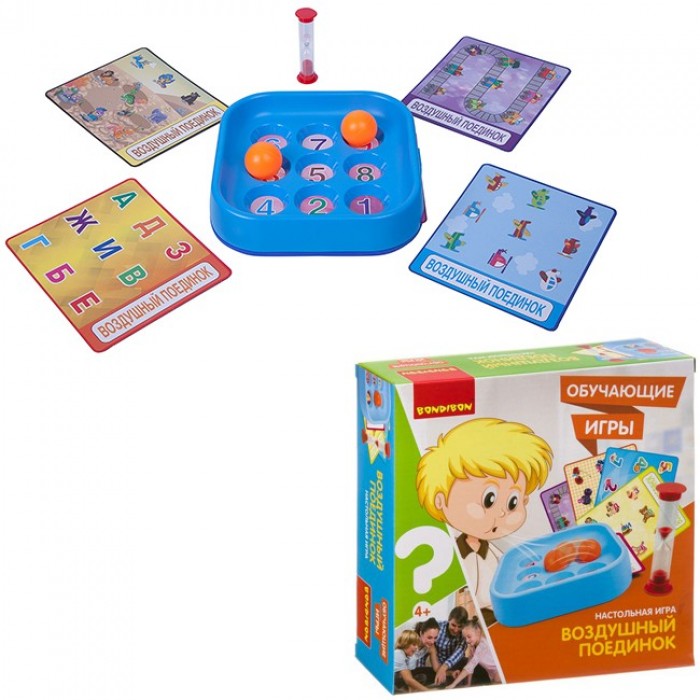 Состав: пластик, картон Возраст: от 4 лет Упаковка: коробка Комплектация: планшет – 1 шт., шарик – 2 шт., двухсторонняя карточка – 5 шт., песочные часы– 1 шт. Страна изготовления: Китай Настольная игра "Воздушный поединок" - это увлекательное и веселое занятие для мальчиков и девочек. Задача участников - сдувать мячик на игровом поле в соответствии с указанным на поле маршрутом, пока пересыпается песок в песочных часах. Эта игра способствует развитию артикуляционного аппарата и формированию правильной речи, помогает научиться концентрации внимания и получить логические и арифметические навыки.