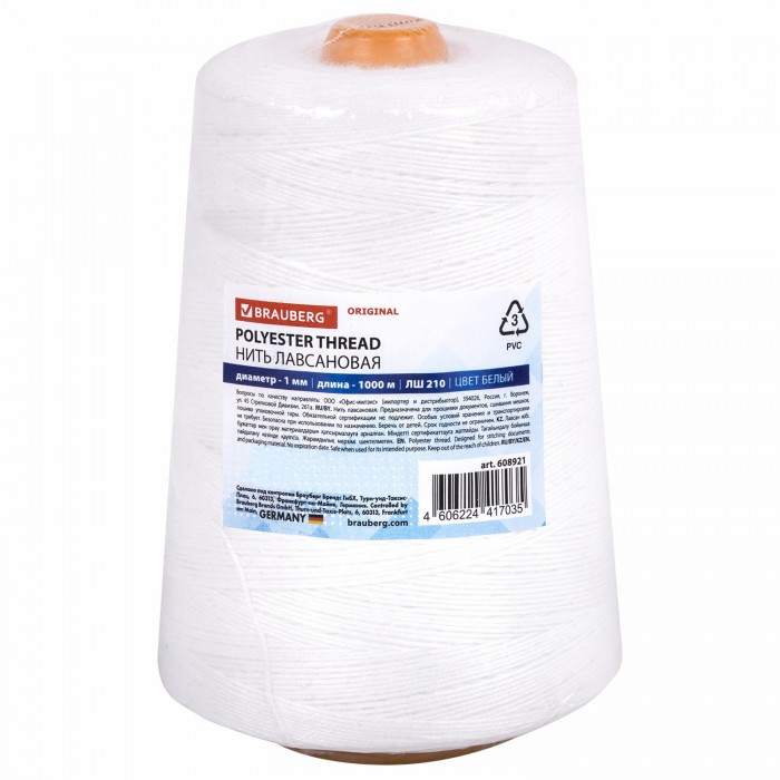 Лавсановая нить BRAUBERG ORIGINAL применяется для прошивки и брошюровки документов в банках и офисах. Подходит для всех типов ручных мешкозашивочных машинок.