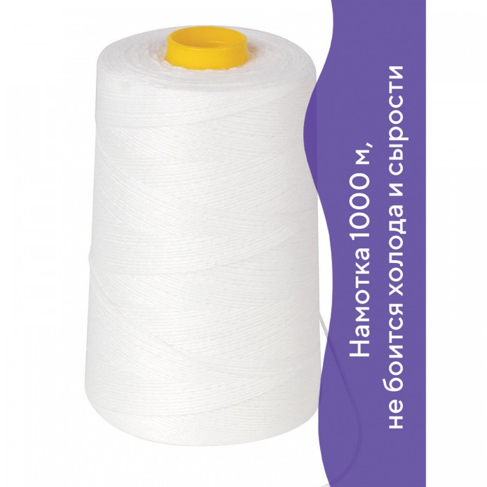 Нить лавсановая для прошивки документов, БЕЛАЯ, диаметр 1 мм, длина 1000 м, ЛШ 210, BRAUBERG, 601578