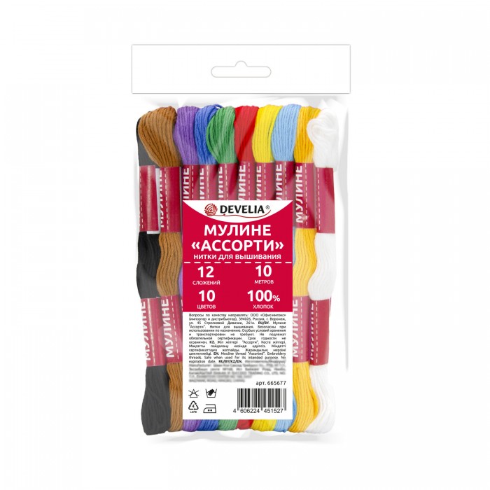 Нитки мулине DEVELIA произведены из 100% хлопка высокого качества, предназначены для разных техник вышивания и плетения. Стойкие цвета не теряют насыщенности и блеска, долго сохраняя свою декоративность.