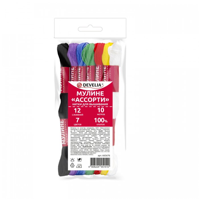 Нитки мулине DEVELIA произведены из 100% хлопка высокого качества, предназначены для разных техник вышивания и плетения. Стойкие цвета не теряют насыщенности и блеска, долго сохраняя свою декоративность.