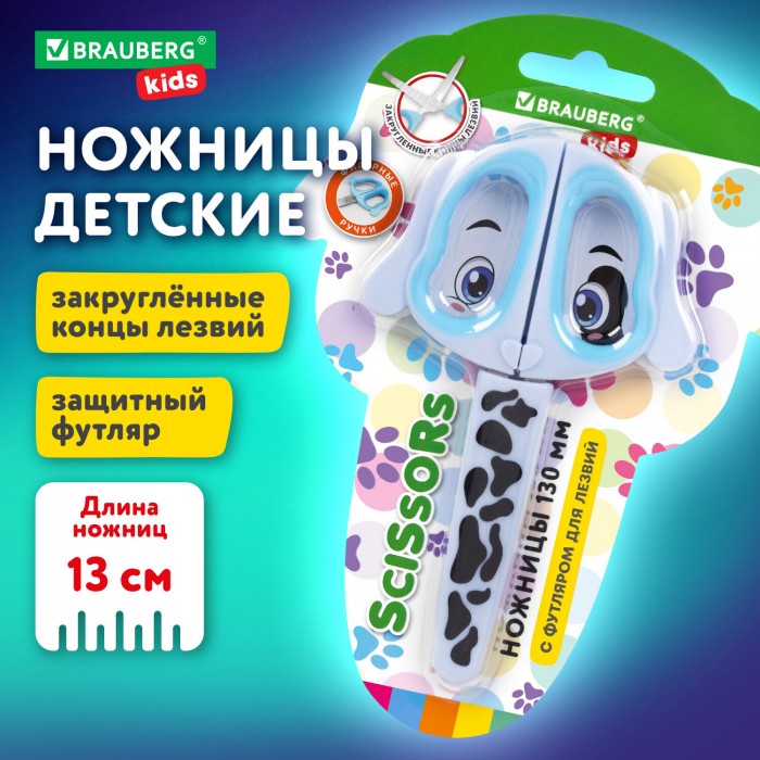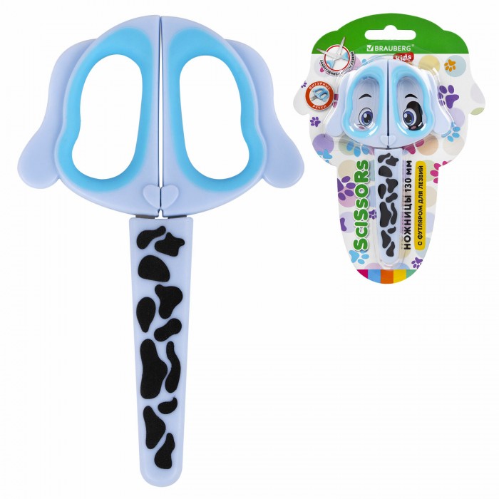 Ножницы 130 мм, фигурные рукоятки с резиновыми вставками "Далматин", с чехлом, BRAUBERG KIDS, 238352