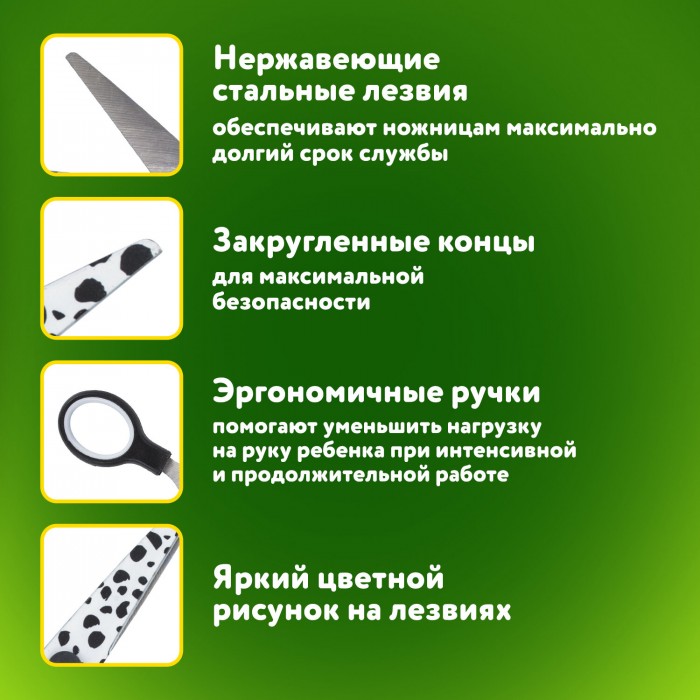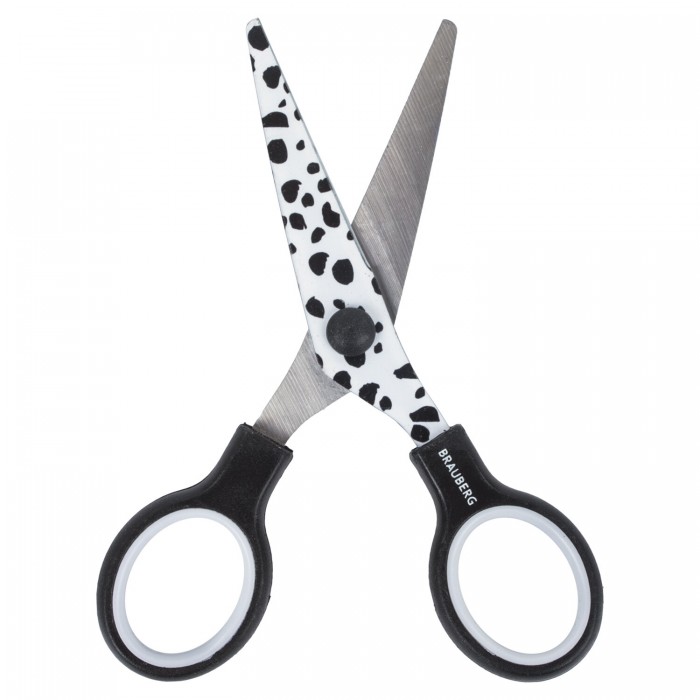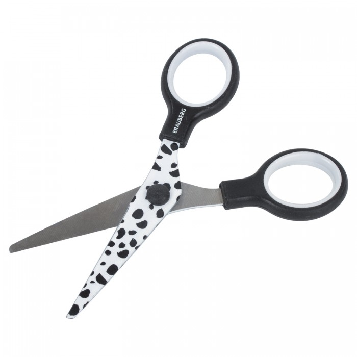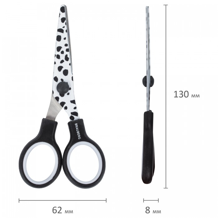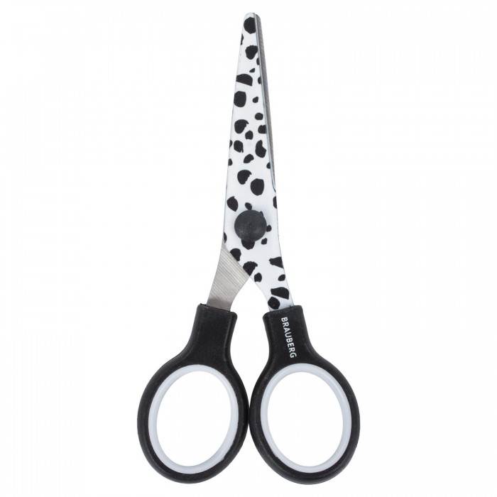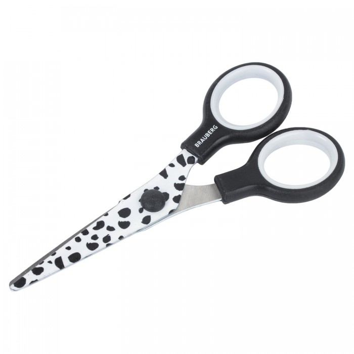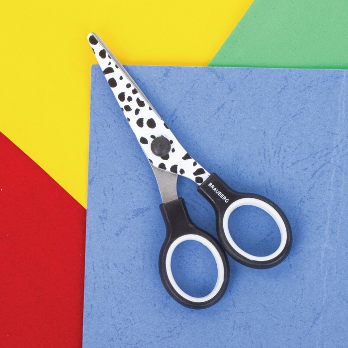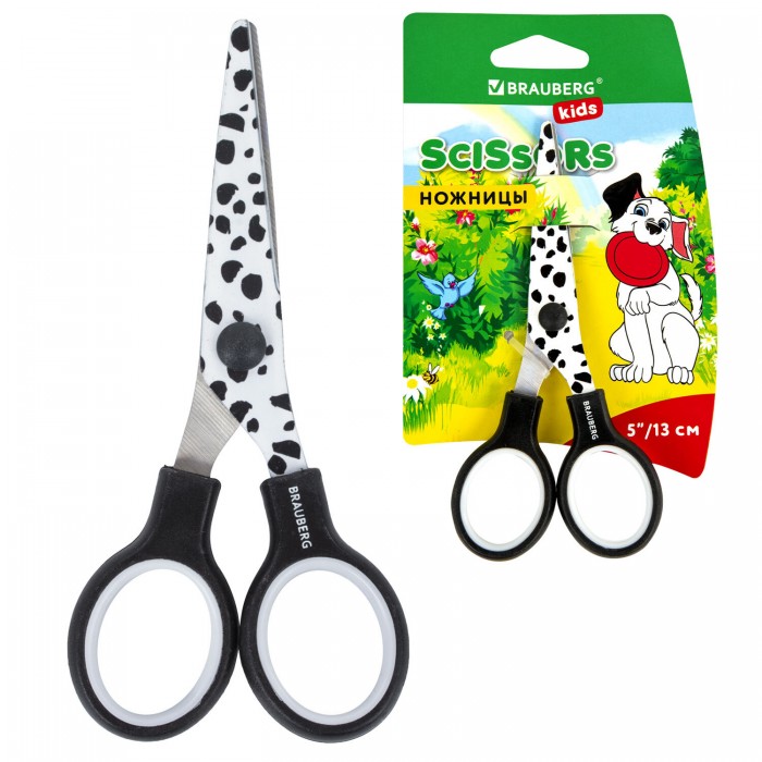 Ножницы 130 мм с цветной печатью "Далматин", чёрно-белые, закругленные, BRAUBERG KIDS, 232276