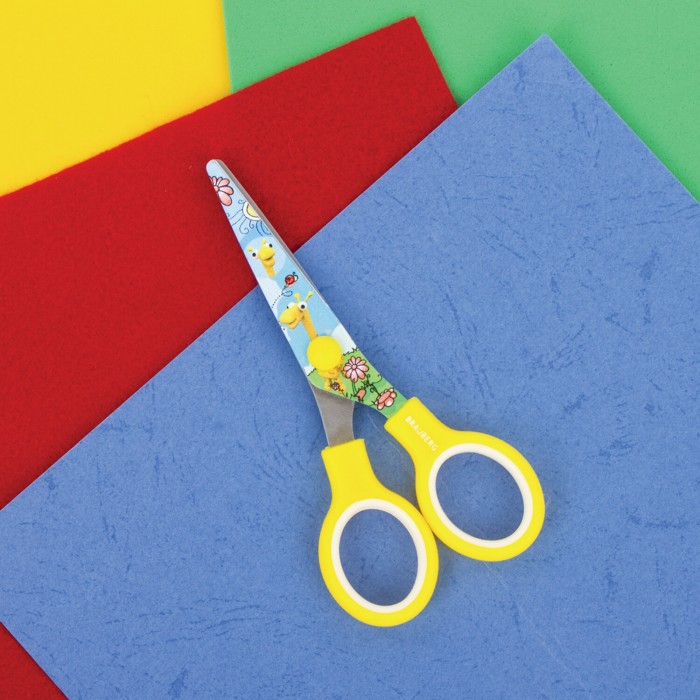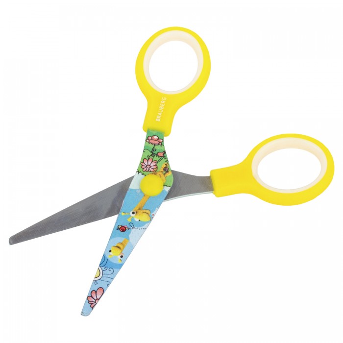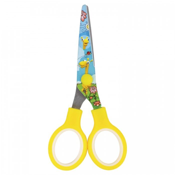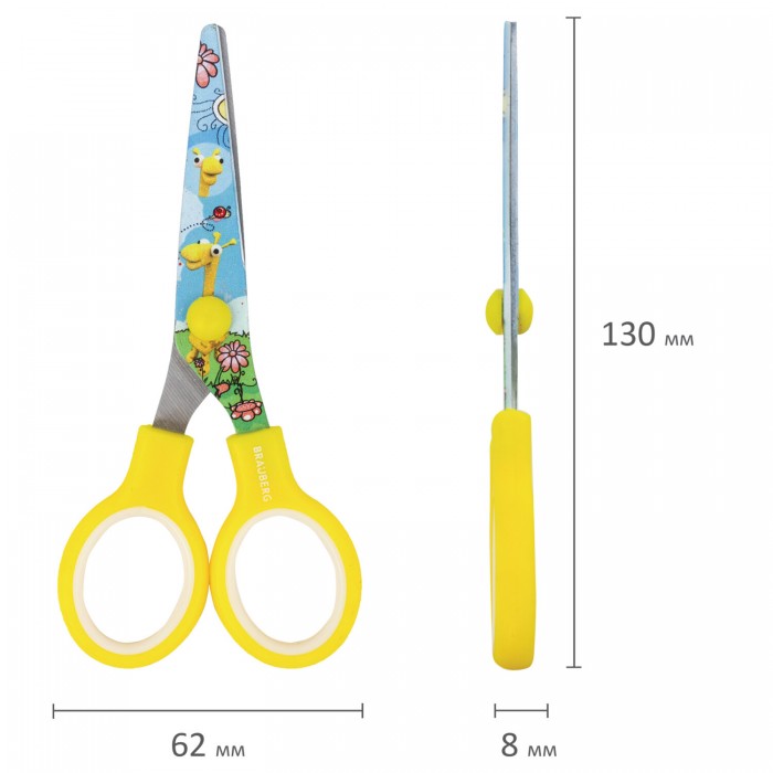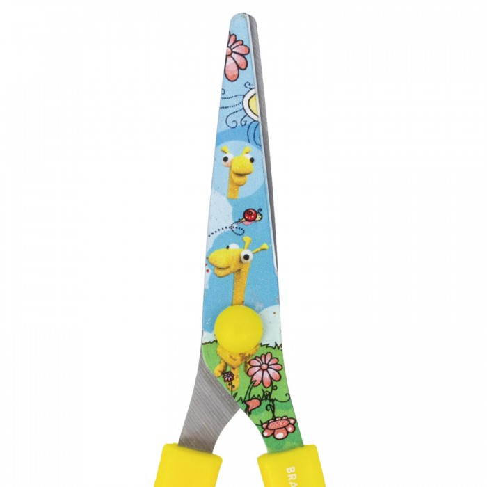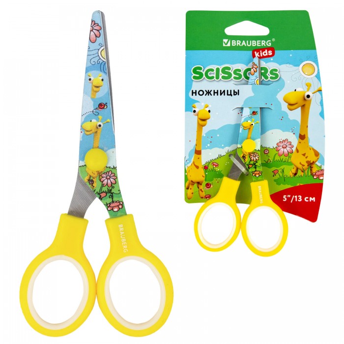 Ножницы 130 мм с цветной печатью "Жирафы", жёлтые, закругленные, BRAUBERG KIDS, 232269