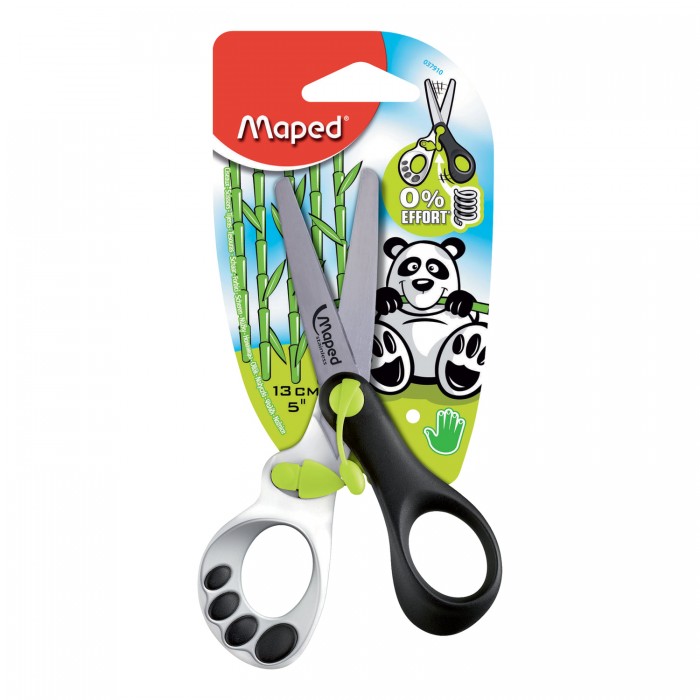 Ножницы MAPED "Koopy" для работы с бумагой, тканью и картоном подойдут для детей от 4-х лет. Специальная пружинка позволяет ножницам открываться автоматически, облегчая усилия. Но можно использовать и как обычные ножницы с помощью специальной стрелки.