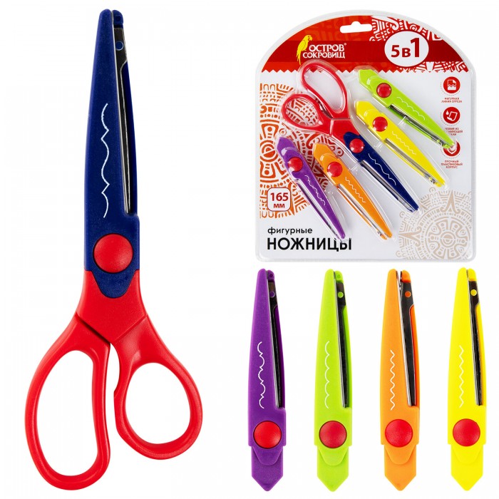 Ножницы ОСТРОВ СОКРОВИЩ, 165 мм, 5 сменных фигурных лезвий, в блистере, 236782