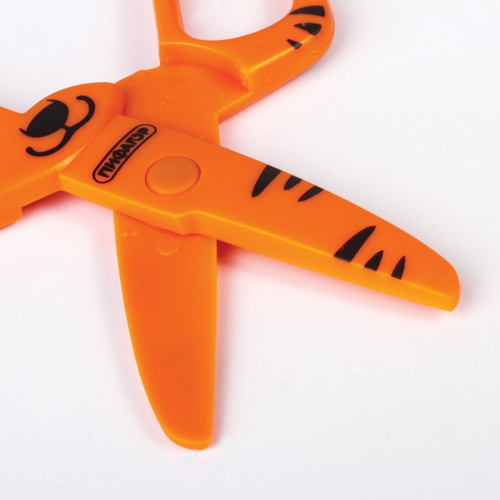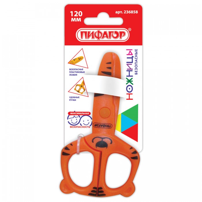 Ножницы ПИФАГОР "Тигренок", 120 мм, с безопасными пластиковыми лезвиями, оранжевые, картонная упаковка с европодвесом, 236858
