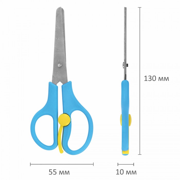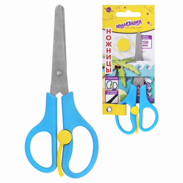 Ножницы ЮНЛАНДИЯ, 130 мм, с усилителем и линейкой, эргономичные ручки, голубые, 238344