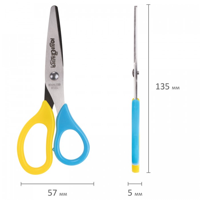 Ножницы ЮНЛАНДИЯ, 135 мм, с футляром для лезвий, желто-голубые, блистер, 237110