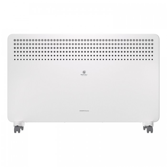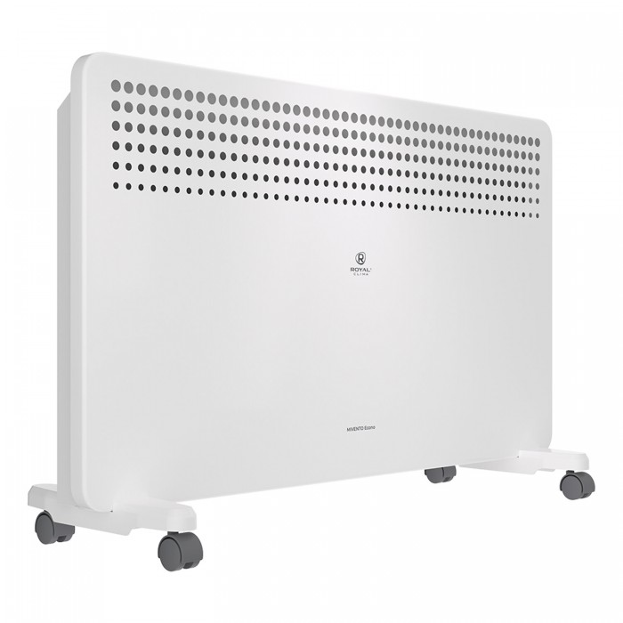 Обогреватель-конвектор ROYAL CLIMA REC-MIE2000M заключен в металлический корпус белого цвета, защищенный от влаги и пыли по IPX0-стандарту, и дополнен колесиками для легкого перемещения по комнате.