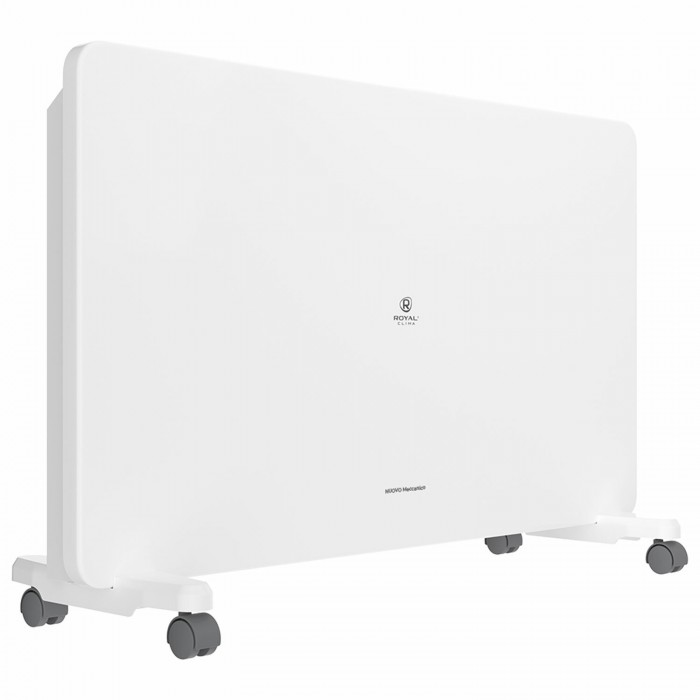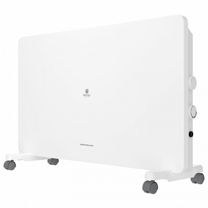 Обогреватель-конвектор ROYAL CLIMA REC-N2000М заключен в металлический корпус белого цвета, защищенный от влаги и пыли по IPX0-стандарту, и дополнен колесиками для легкого перемещения по комнате.