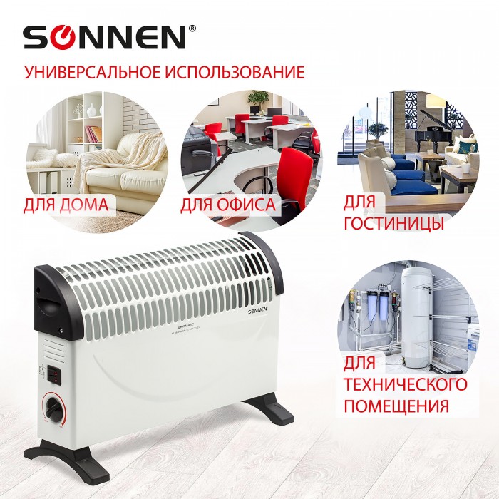 Стильный и эргономичный обогреватель-конвектор SONNEN Y-02S незаменим для создания комфортной температуры дома и в офисе.