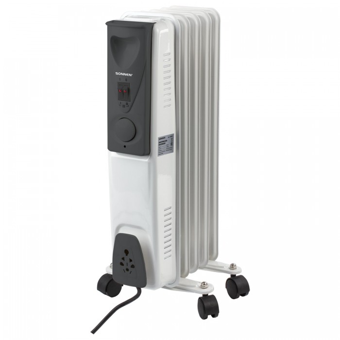 Обогреватель масляный SONNEN DFS-05, 1000 Вт, 5 секций, белый, 453497