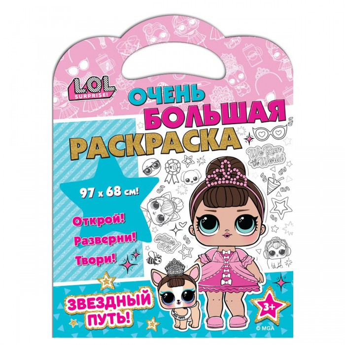 Очень большая раскраска "LOL SURPRISE! Звездный путь" - для всех, кто любит рисовать и раскрашивать! Двусторонняя раскраска-плакат размером 970 на 680 мм сложена в книгу с яркой обложкой. У книги картонная ручка - раскраску удобно носить. Большое поле для раскрашивания и любимые герои помогут развить творческие способности ребенка, фантазию и усидчивость. Такая раскраска - это идеальный вариант для досуга: можно раскрашивать одному, с друзьями или всей семьей. Раскраска отлично подойдет для подарка и как развлечение для детского праздника. Раскрашивайте на полу, на большом столе или повесьте плакат на стену. Будет весело!