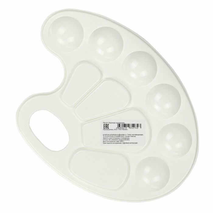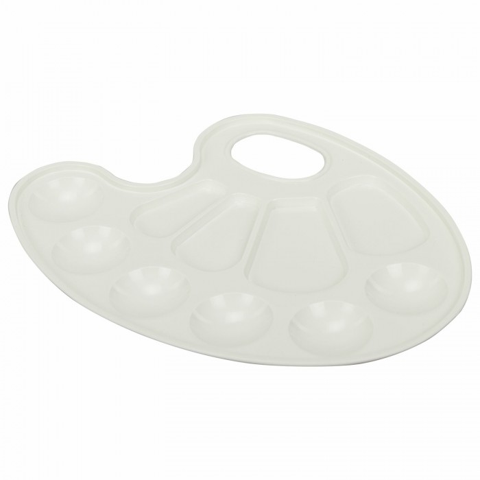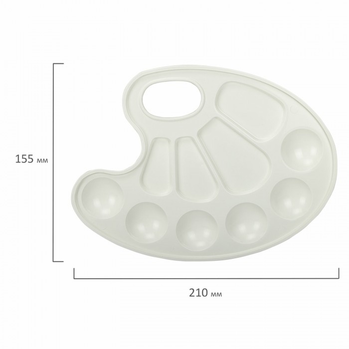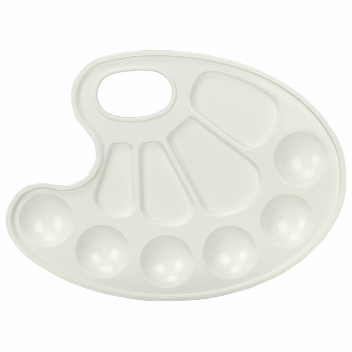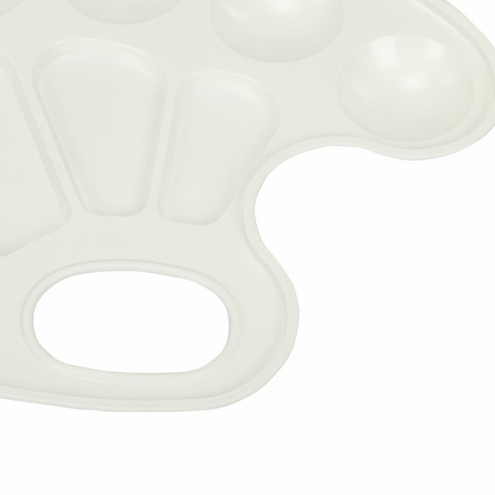 Палитра предназначена для смешивания красок. Удобна и проста в использовании. Позволяет получать новые оттенки путем смешивания цветов. По краю палитры есть 6 ячеек для размещения красок, а в центре палитры 4 отделения для смешивания.