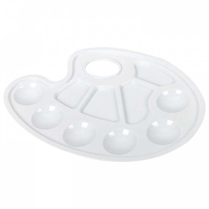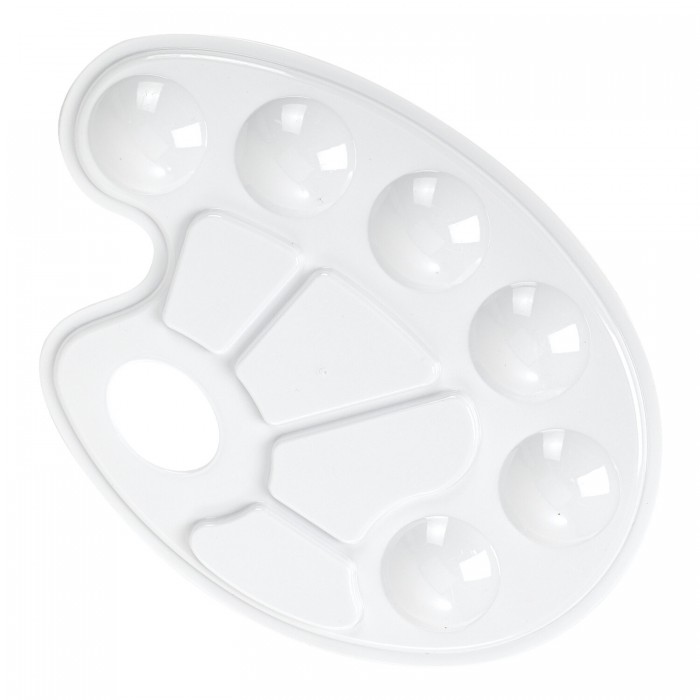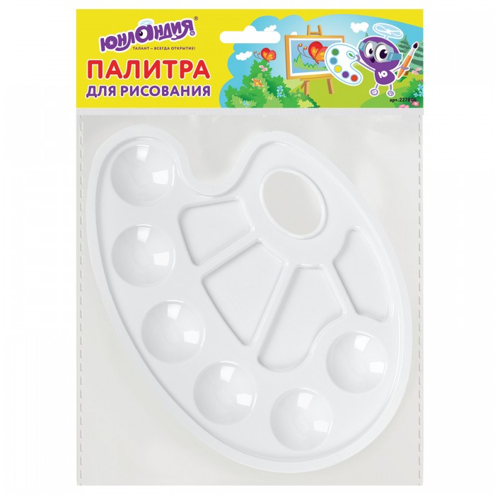 Палитра для рисования ЮНЛАНДИЯ белая, овальная, 6 ячеек для красок и 4 для смешивания, европодвес, 227806