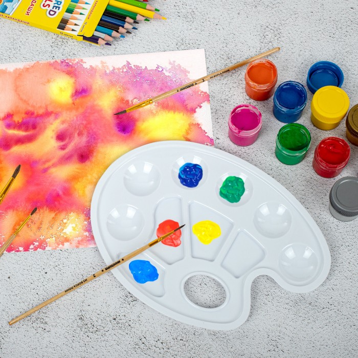 Легкая, компактная и удобная палитра для рисования ЮНЛАНДИЯ предназначена для смешивания красок и получения новых тонов.