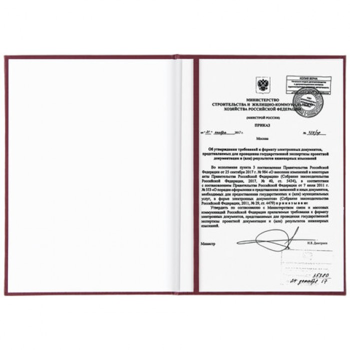 Папка адресная бумвинил "НА ПОДПИСЬ", А4, бордовая, индивидуальная упаковка, STAFF "Basic", 129577