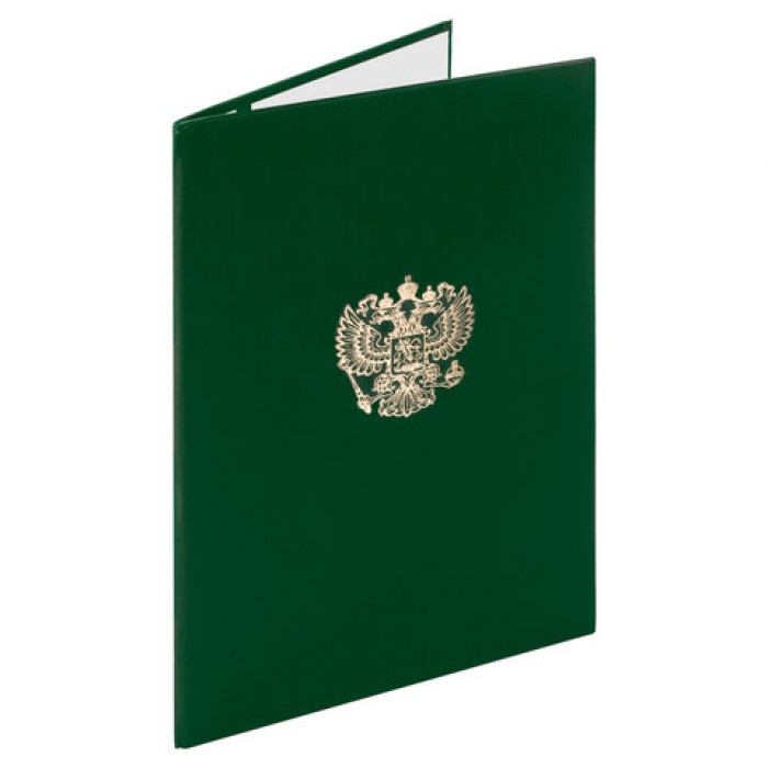 Папка адресная бумвинил с гербом России, формат А4, зеленая, индивидуальная упаковка, STAFF "Basic", 129581