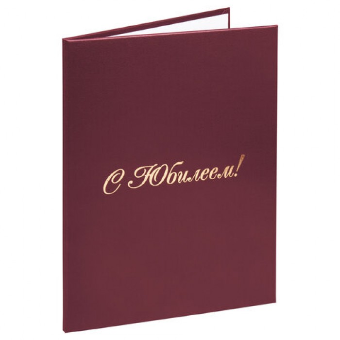 Папка адресная бумвинил "С ЮБИЛЕЕМ!", формат А4, бордовая, индивидуальная упаковка, STAFF "Basic", 129579