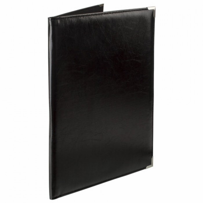 Адресная папка выполнена из качественного кожзаменителя и прошита по краям. Для повышения прочности папки предусмотрены металлические уголки.
