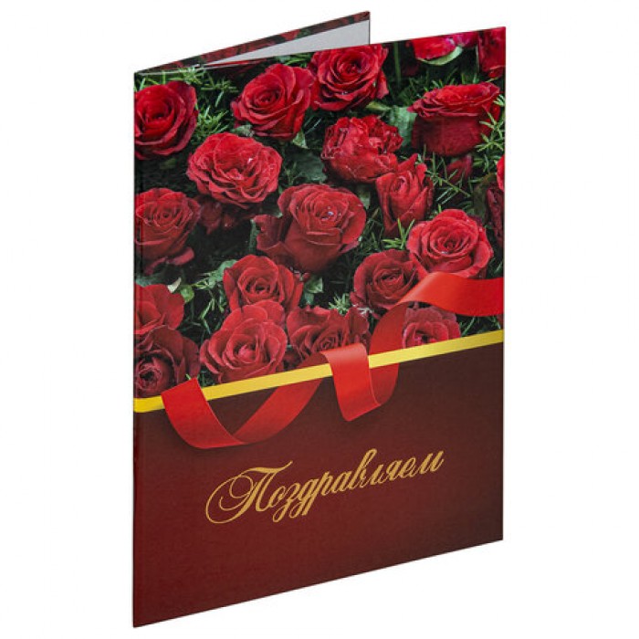 Папка адресная ламинированная "ПОЗДРАВЛЯЕМ!", А4, розы, индивидуальная упаковка, STAFF "Profit", 129585