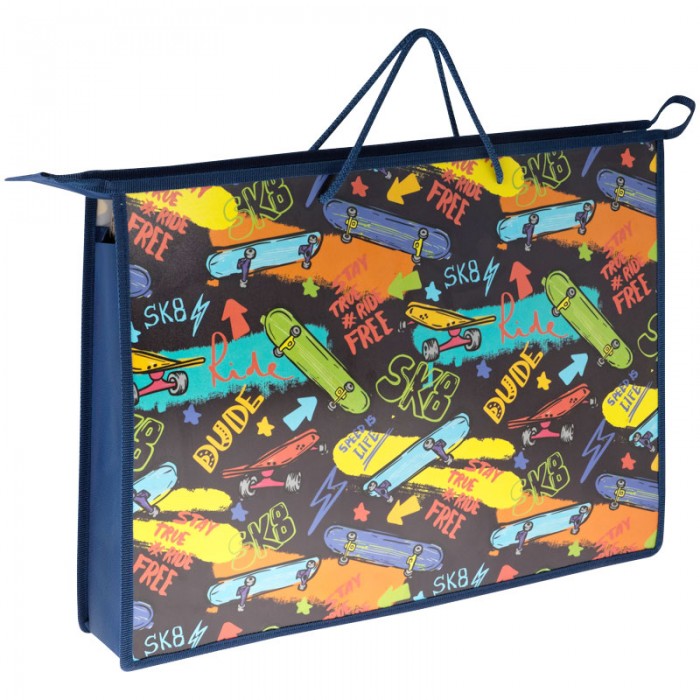 Папка для чертежей и рисунков на молнии ArtSpace Skate формата А3 станет стильным помощником в учёбе и привлечёт внимание ярким дизайном. Изделие имеет одно отделение. Увеличенная глубина папки 70 мм позволит легко уместить стакан-непроливайку и все необходимые принадлежности для творчества. Застежка-молния сверху надежно защищает содержимое. Папка изготовлена из прочного пластика и ткани. Оригинальный дизайн с рисунком обязательно привлечёт внимание мальчиков. • Формат: А3; • Материал: пластик; • Количество отделений: 1; • Тип застёжки: молния; • Цвет: цветной/рисунок.