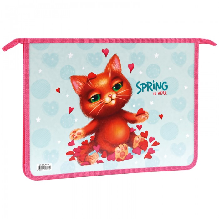 Папка для тетрадей 1 отделение А4 ArtSpace "Spring Cat", пластик, на молнии