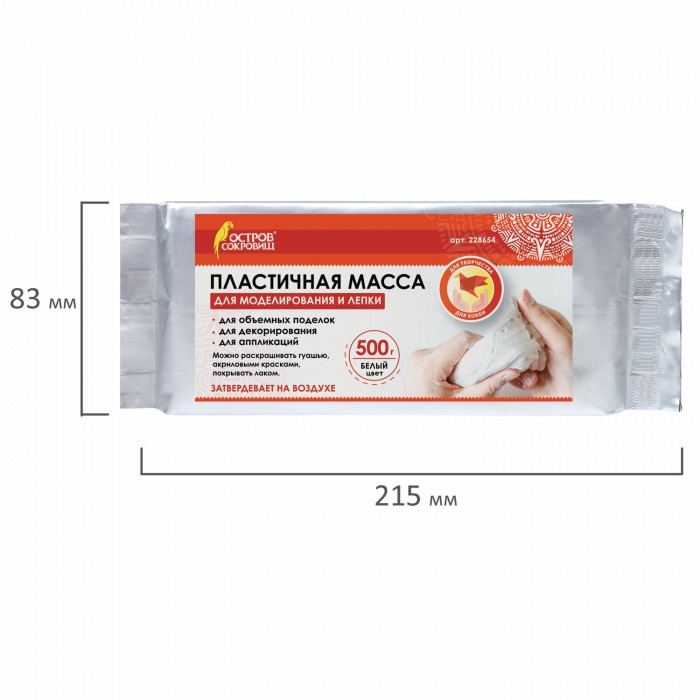 Паста (масса) для лепки ОСТРОВ СОКРОВИЩ, самозатвердевающая, 500 г, натуральный белый, 228654