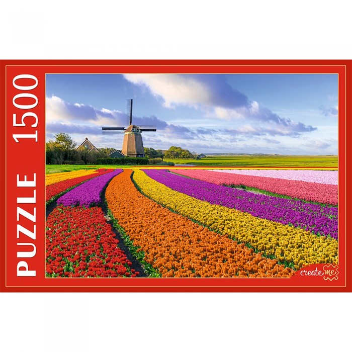Пазл 1500 Тюльпановое поле и мельница ГИ1500-2643 /12/