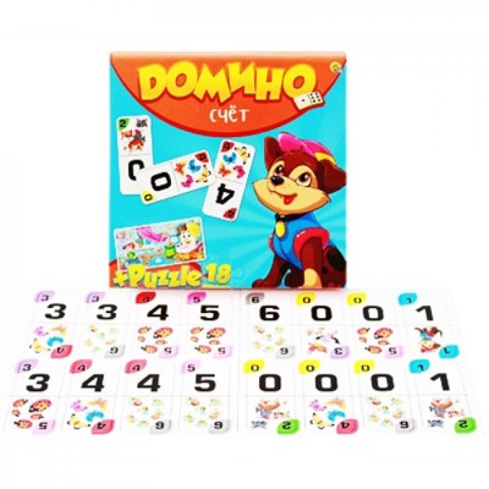 Комплектация: детали пазла - 18 шт., домино - 28 шт. Материал: картон Упаковка: картонная коробка Размер упаковки: 18*18*5 см Возраст: 3+ Страна обладатель бренда: Россия Оригинальный яркий пазл представляет собой картинку, разделенную на множество деталей разной формы. Цель - собрать их все воедино, чтобы получилось цельное изображение. Сборка пазла – увлекательное занятие для всей семьи. Пазлы собираются легко. Каждая деталь имеет индивидуальную форму и легко соединяется с другой, поэтому у Вас обязательно получится картина, собранная собственными руками. Процесс сборки поможет развитию образного и логического мышления, произвольного внимания, восприятия, а также учит правильно воспринимать связь между частью и целым. Складывание пазлов может быть не только самостоятельным занятием, но и замечательным развлечением в группе друзей или в семейном кругу. Помимо пазла, в набор входит домино - игрокам предстоит по очереди выкладывать на стол костяшки так, чтобы совпадало изображение и цифра.