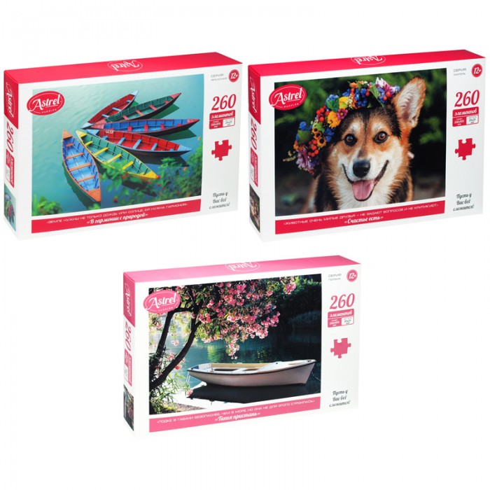 Линейка пазлов из 260 элементов Astrel позволит отвлечься от ежедневной суеты. Яркие картинки и крупные детали удобны для сборки даже для детей. Соберите все пазлы серии! Готовые картины станут отличным украшением любого интерьера.
