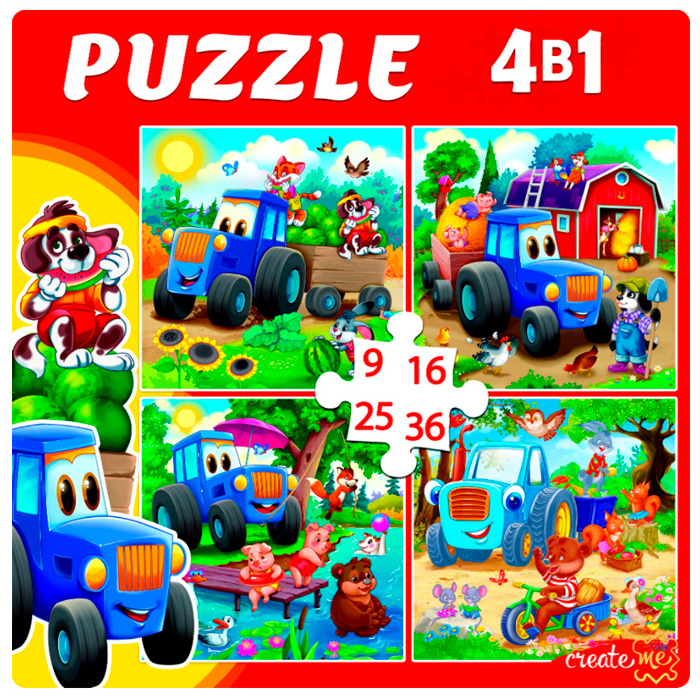 Пазл 4 в 1 9,16, 25, 36 эл. Веселый трактор П-1159