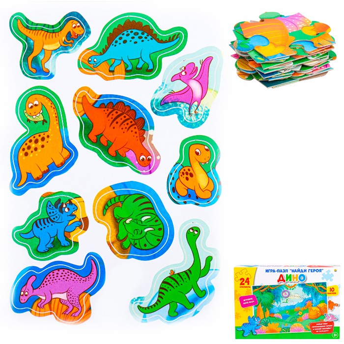Пазл с наклейками Найди героя "Дино" 10 наклеек ИН-8323