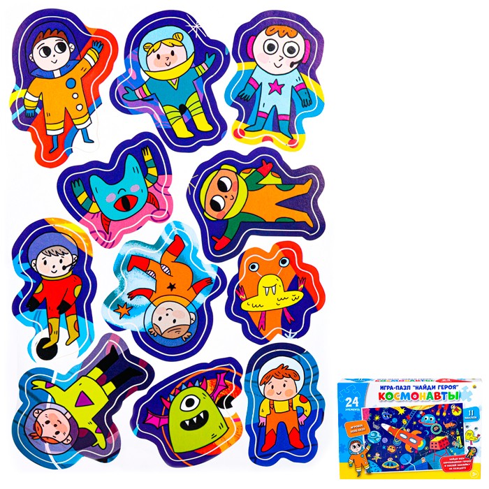 Пазл с наклейками Найди героя "Космонавты" 10 наклеек ИН-8326