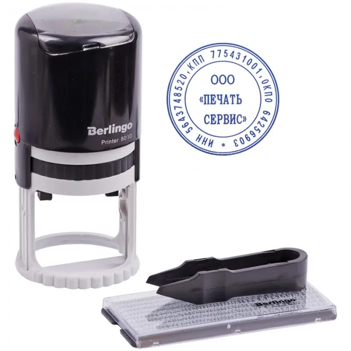 Печать самонаборная автоматическая Berlingo "Printer 8010", 1 круг, диаметр 40мм, в комплекте сменная штемпельная подушка, пинцет, касса букв, цифр и символов. Позволяет оформить документ четкой печатью с равномерной насыщенностью и цветовым тоном всех участков оттиска. Эргономичный дизайн. Сменная штемпельная подушка в комплекте (срок годности сменной подушки - 6 лет, дата изготовления указана на упаковке). Легкая замена штемпельной подушки. Символы надежно закрепляются в текстовой пластине (две ножки). При замене текста рекомендуется заменить подушку. Долговечность, благодаря металлической втулке. Пожизненная гарантия на механизм. Упаковка - блистер с европодвесом