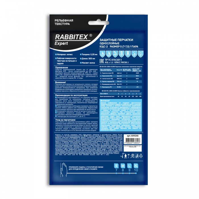 Латексные перчатки RABBITEX для защиты рук от загрязнений и химических факторов – кислот, щелочей, нефтепродуктов, растительных и животных масел и жиров, а также от воды и растворов нетоксичных веществ. Могут применяться в быту и на производстве.
