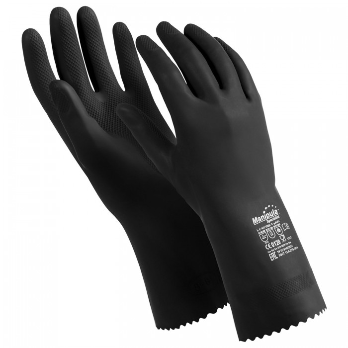 Перчатки латексные MANIPULA "КЩС-2", ультратонкие, размер 8-8,5 (M), черные, L-U-032/CG-943