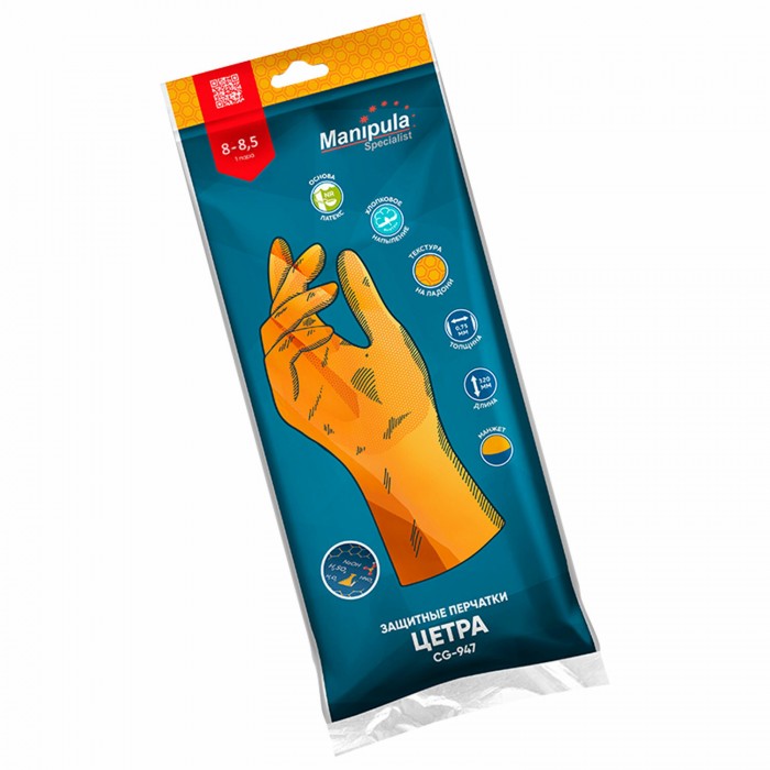 Перчатки латексные MANIPULA Specialist Цетра, КЩС-1, размер 8-8,5 (M), оранжевые, L-F-04/CG-947