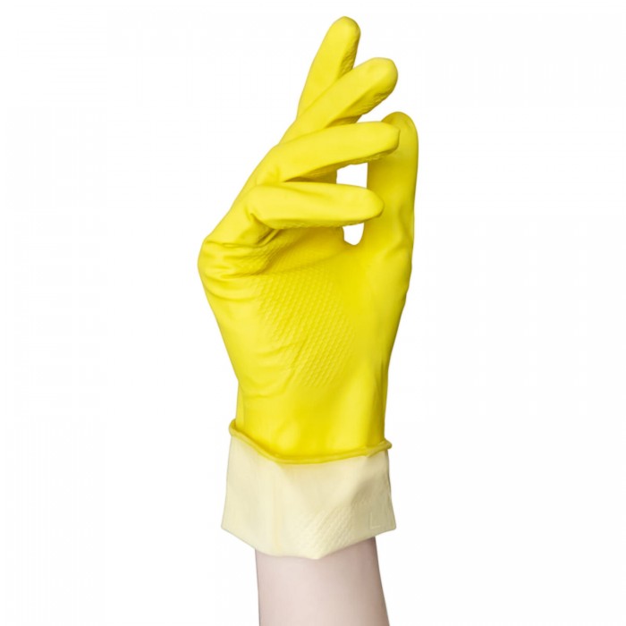 Перчатки МНОГОРАЗОВЫЕ латексные AVIORA, хлопчатобумажное напыление, размер L (большой), желтые, вес 36 г, 402-568